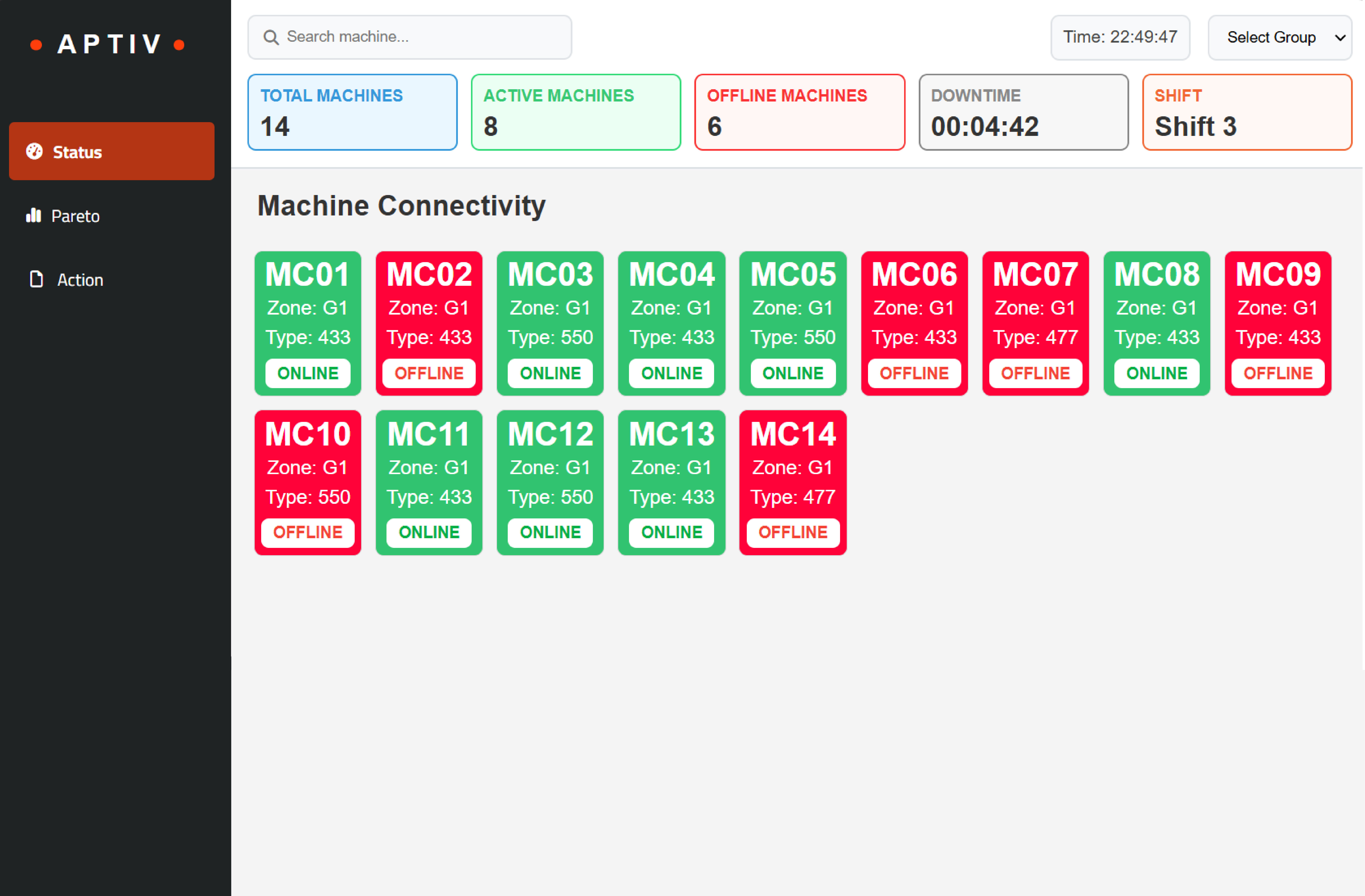 I developed a real-time machine connectivity monitoring system that enables continuous tracking of network status for machines, automates the detection of disconnections, and records downtime by shift.